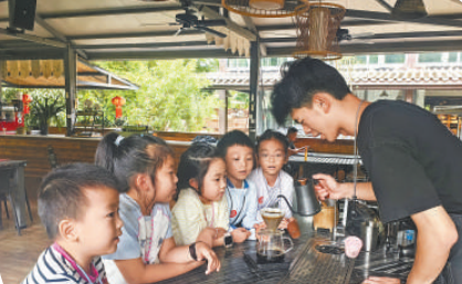 最初,與普洱市大多數(shù)咖啡莊園一樣,小凹子咖啡莊園生產(chǎn)的咖啡豆大部分用于原料供應(yīng)。然而,一段時間咖啡豆的價格波動讓他開始思考轉(zhuǎn)型。“咱們這兒生態(tài)環(huán)境好,發(fā)展旅游有基礎(chǔ)?,F(xiàn)在人們對咖啡的興趣也不止于品嘗,我們可以試試文旅融合的路子?!绷问篮勒f。
