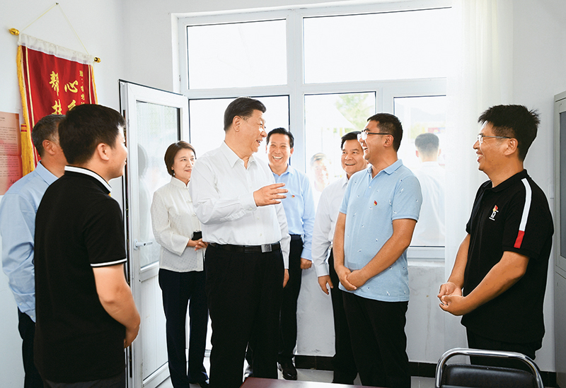2019年7月15日至16日,中共中央總書記、國家主席、中央軍委主席習(xí)近平在內(nèi)蒙古考察并指導(dǎo)開展“不忘初心、牢記使命”主題教育。這是15日下午,習(xí)近平在赤峰市喀喇沁旗河南街道馬鞍山村黨群服務(wù)中心了解基層黨建、民族團(tuán)結(jié)和鄉(xiāng)村振興情況。