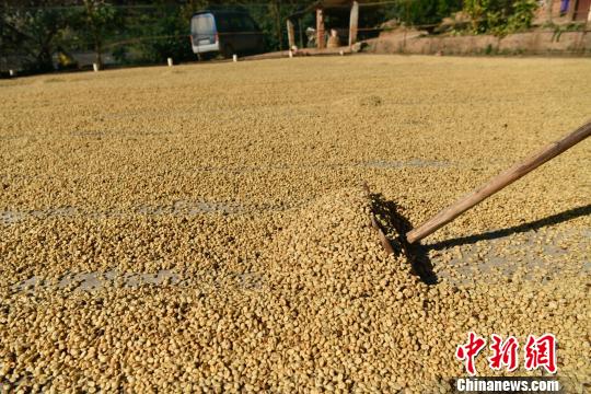 圖為普洱咖農(nóng)在太陽(yáng)下曬咖啡。任東攝